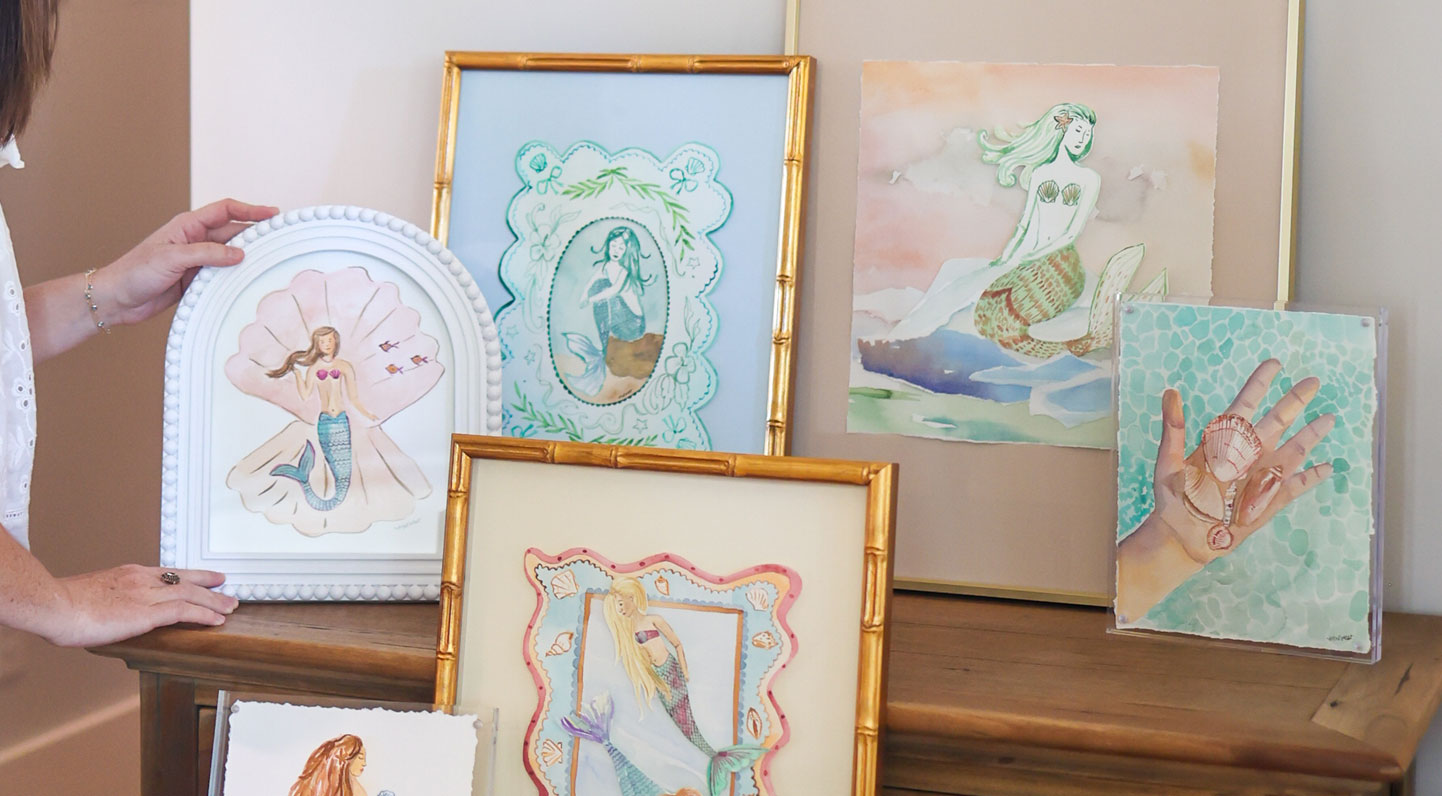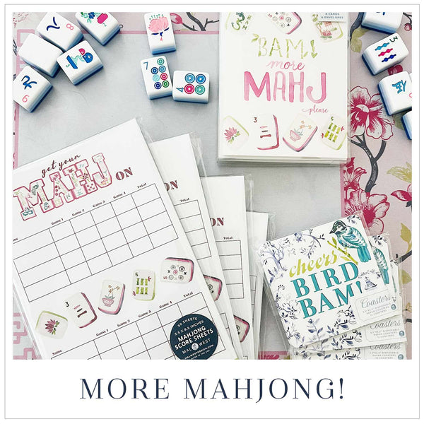 Design: Watercolor mahjong tiles with “Got My Mahj On” text